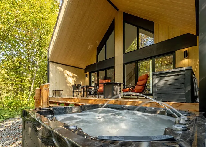 Villa Scandinave 3 Cac Avec 3 Sdb Privees & Spa, som ligger 7 km från La Vallée Secrete, har bubbelpool, hydromassagebadkar och bastu samt ett spa, där gästerna kan koppla av. Villan, som ligger bara en kort promenad från Club de Golf Grand-Portneuf, har vattenpark, saltvattenpool och solterrass för extra njutning.